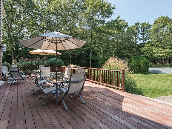 acre in Quogue Village, this 4662 sq. foot Post Modern home greets you with a grand 2-story entryway that leads to a great room with a vaulted ceiling, wood-burning fireplace and built-in bookshelves and cabinetry. A wall of sliders brings in lots of light and opens out to the expansive mahogany deck, heated gunite pool and Har-Tru tennis court. The open floor plan includes a formal dining room, and a chef's kitchen with top of the line appliances, Caesarstone countertops, wine refrigerator, and an oversized center island. The breakfast area leads to the screened porch that looks out on the backyard. The first floor primary suite includes a gas fireplace, two walk-in closets and the just renovated spa bath with separate shower and a soaking tub. The upstairs includes three additional en suite guest bedrooms and a junior primary suite that has its own private deck. Includes a gym with a Peloton bike, elliptical machine and free weights. The newly finished basement offers a full bath and a game room with a ping pong table, shuffleboard table, and a wet bar. Access to the Quogue Village Beach completes the perfect summer vacation home.