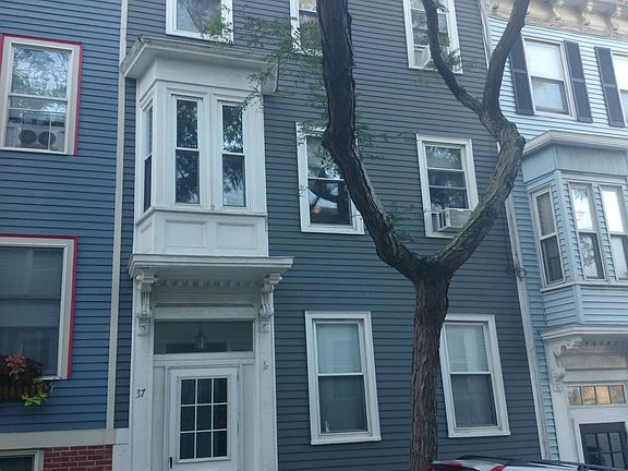 This one of a kind 2 bed plus office is massive with 1500 square feet over two floors is located on Charlestown Beautiful treelined Auburn Street. The entire apartment is in beautiful condition with both modern updates and amazing period detail throughout the apartment. Impressive crown molding and fireplace, beautiful wide plank pine hardwood floors. The Dining room opens up to an expansive living room with high Cielings, First floor also has spacious kitchen with dishwasher. The upper level has very large bedrooms and a bonus room that works great for an office. Private Deck! Laundry in basement