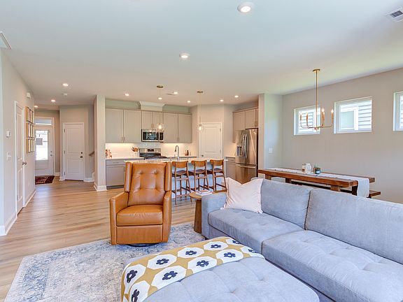 Practically brand new end unit townhome in Briar Chapel is ready for it's next story! Gently lived in for just over one year with lovely upgrades and a fabulous spacious floor plan that's great for entertaining yet cozy and quiet for everyday life. Gorgeous kitchen with quartz countertops, high end refrigerator and upgraded cabinet pulls/handles. Upgraded light fixtures, abundant cabinetry, walk in pantry and fireplace are all graced with upscale luxury vinyl plank flooring. Upstairs has a soothing primary suite with HUGE tiled shower and spacious closet + linen closet. Two spare bedrooms with hall bath plus bonus/loft area and laundry room complete the 2nd floor. This home is in a great spot in the neighborhood. HURRY it will not last long!