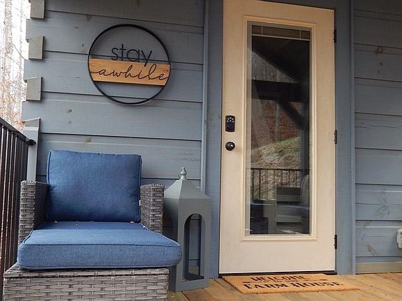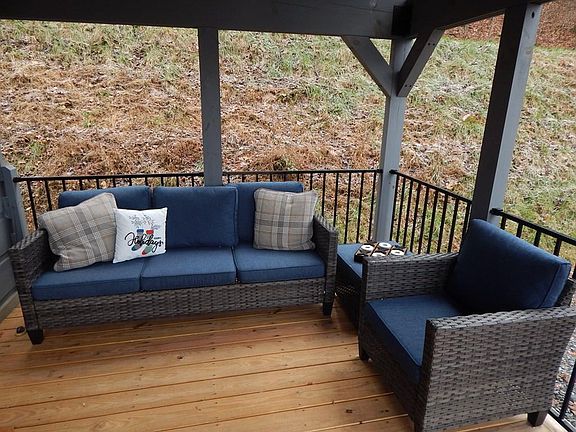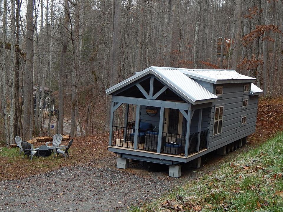 Enjoy mountain living in this tiny home. Great view from this 1.25 acre lot. This tiny home comes fully furnished and decorated with everything to live or use as a rental. Home features bunk beds in hallway for additional sleeping. Hallway stackable washer and dryer. Large loft that can be used for sleeping, play area, or storage. Come sit on the porch and enjoy dining, visiting the friends, or take in the beauty of the surrounding area. Gated Community and close proximity to town add to the list of positives.