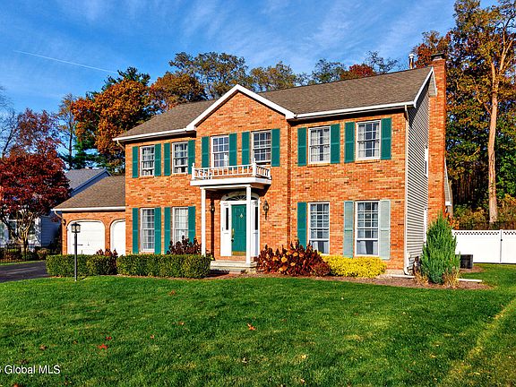 This spacious Center-hall Colonial is situated on a quiet Cul-de-sac, ½ acre lot, in S. Colonie SD. This 4 to 5 BR, 3 full BA home offers beautiful HW flooring, floor to ceiling 1st FL front windows, letting in an abundance of natural light, open concept LR where you can get cozy in front of the large wood burning FP, just off the eat-in KIT & FDR, all overlooking the nicely landscaped BY. The 1st FL also boasts a home office and den or 5th bedroom & newer full BA w walk-out tub. Upstairs you'll find 4 good sized BRs and 2 full BAs, incl. a spacious PR suite, w vaulted ceilings, dressing room w his & hers closets, & full BA. To complete the package, there's an oversized 2 car att. garage w epoxy floors, 2-tier back deck, hot tub and is completely fenced in w privacy fence on both sides.