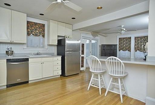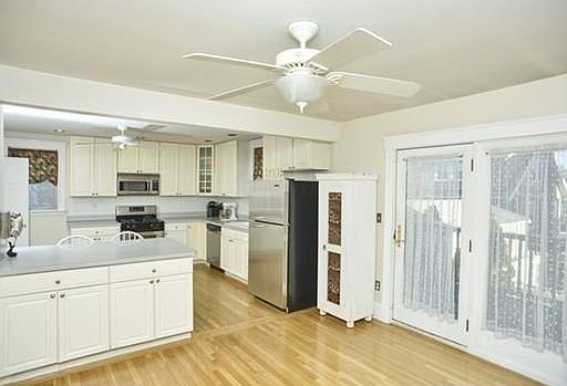 This sun-filled updated home is just steps from Wollaston Beach and blocks to the MBTA & Highway. This home features an open concept, dining-living and kitchen, updated cabinets, breakfast bar, stainless steel appliances, private rear deck, a spacious finished basement and hardwood floors throughout. All three bedrooms include walk-in closets along with a spacious full bath to complete the upper level. Carpeted lower level offers en-suite potential with a dedicated entrance, full bath and Laundry room. The lot includes a garage & fenced rear yard. 3 minute walk to Wollaston Beach, and 10 minute walk to North Quincy T.