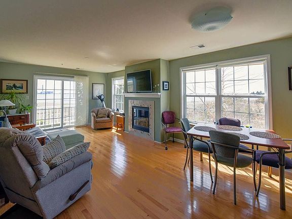 BAYFRONT - SUNSET MARINA,Fabulous 2 BR, 2 Bath Corner Unit in perfect move-in condition,(extra windows make it lighter and brighter with great water view). Recently redone eat-in kitchen,with new stainless steel appliances- quartz breakfast bar has been lowered to comfortable seating level- totally unique for this development dining area, master suite with private bath, hardwood floors, ceramic tile, built in gas log fireplace,(only first floor unit with a real fireplace) deck, ceiling fans and much more - attached garage with auto-door opener, swimming pool. On the migratory trail, this is a bird watcher's delight, spectacular bay views!