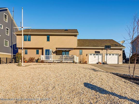 Welcome to your waterfront oasis! This home boasts 90 ft of newer bulkhead/dock with electric. A quick ride gets you to open water for the boating enthusiast or simply enjoy the allure of waterfront living. First floor has a bed & fulll bath and powder rm. Upstairs has 2 beds, full bath and a Primary ensuite with small balcony overlooking water. Upgraded landscaping surrounds you. Newer paver driveway for 6+ cars, charming rocking chair front porch with retractable awning adds to your outdoor comforts. Come enjoy the essence of coastal living.