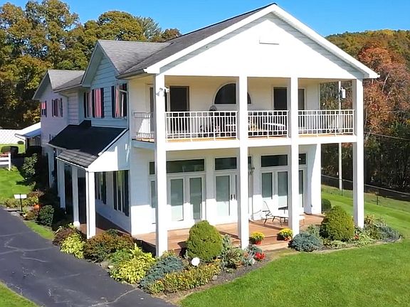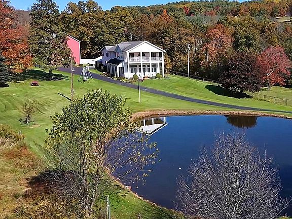 A rare family-owned property of three generations is now being sold as one of the largest intact parcels in its area, offering space and privacy. Its quarter-mile driveway leads to a 4,950 sq. ft. (4BR/4BA) country estate with two large barns on 311 acres. One-third of the acreage is open and the remaining two-thirds is wooded, with a recent timber appraisal available.The original home was built in the mid-1900s with its last custom-built renovation adding 2400 sq. ft. The 1,100 sq. ft. master suite has it all! Dual bathrooms, walk-in closets, oversized jetted tub, walk-in shower, gas fireplace, surround stereo, and a breathtaking walk-out balcony with panoramic views of the groomed landscape and pond. Additionally, there are sunrise and sunset views, making this a true owners' retreat. Three additional bedrooms are located at the other end of this split design, with a full bathroom, laundry room and a separate staircase. Below the master, find a spacious 900 sq. ft. great room enhanced with a gas fireplace, a wall of windows offering passive solar heating in the winter with French doors opening to an inviting wrap-around veranda for entertaining and dining with water and hillside views. The kitchen: with an adjacent butler's pantry, opens to a sitting room and the large formal dining room making large gatherings flow well. Downstairs the finished basement offers a rec room and studio area for exercise or an office. More outdoor living is created with the 2-car garage carport design which can be used in a variety of ways with lawn views and an adjacent hot tub.Both two story barns are well-built and maintained (40x30) & (50x32) with adjacent high-tension fenced pastures that include spring feed heated water troughs. The upper barn is currently utilized for horses on the lower level. There is hay and equipment storage on the upper level. The lower barn has a designated dog kennel, tack room and sitting room, extending to more storage space and a horse run-in. These barns could be repurposed or renovated for celebration venues with their rustic vaulted tongue and groove wood-beamed ceilings with possible funding from NYS's current barn restoration tax credit.This property allows for nearly limitless recreation, sustainable green living or income opportunities. Follow the trails in the woods on horseback, ATVs, and cross-country skis, or enjoy your own private game land to hunt. The timber includes saw logs of white/red/black/ chestnut oak, beech, hickory, blk/red cherry, hemlock, white pine, and both red and sugar maples. Hunters will find the 250 acres of woods inhabited with deer, turkey, pheasants, bears, small game and occasional sightings of bobcats.The home also has a view of a spring feed pond used for swimming or fishing that is a perfect location for Adirondack chairs at the fire pit to enjoy evening sunsets, starry nights and especially a panoramic view of the Southern Tier's colorful foliage of leaves.If you're looking for a spacious private property away from it all, take advantage of the full potential and income possibilities from land development, raising livestock to solar farming this one could offer you. Conveniently located less than 6 miles from Elmira and less than 25 minutes from the Elmira Corning Airport.Proof of funds or a prequalification letter are required for all showings to be confirmed. The seller requests a minimum of 48 hour notice to schedule all showings and requires an agent to be present to enter and show the property as the home is currently rented. Please view the drone video and interior photos and contact us today for more information on this grand country estate and further envision the opportunities it presents.
