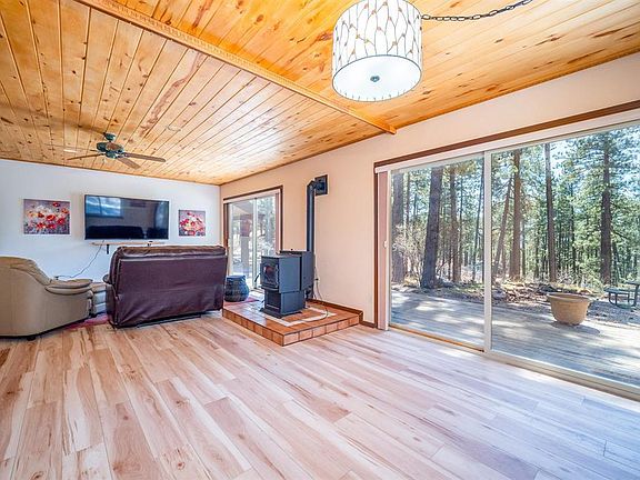 Welcome to your private retreat in Forest Lakes! Nestled among the tall pines on 3.1 acres, this beautifully updated 3-bedroom, 2.5-bath home offers the perfect blend of comfort, functionality, and privacy. With 2,608 square feet of living space, two living areas, and two dedicated offices, there’s room for everyone to live, work, and play. The remodeled primary suite is a true sanctuary, featuring new flooring, an updated bathroom, and brand-new sliding glass doors that open to a private hot tub and pad — perfect for relaxing under the stars. Inside, enjoy the warmth of a new pellet stove and the peace of mind that comes with an updated holding tank. The oversized 2-car garage is a dream, complete with a heated workshop on one side and a large storage room on the other — offering incredible flexible space for hobbies, projects, and gear. The kitchen features two pantries and opens to a spacious living and dining area with new flooring throughout the home. Relax on the covered front or back porch, entertain with ease, and take in the peaceful, wooded setting. The circular driveway provides easy access and plenty of parking for guests. This is mountain living at its finest — private, peaceful, and move-in ready. Don't miss your chance to own this incredible Forest Lakes property — schedule your showing today!