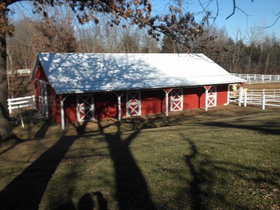 30 acre recreational prop w/lake for boating/fishing/swimming, horse facilities, & trails for horses/atv's/walking. 30x60 horse barn has tack room w/water/elect/phone, 2 stalls w/elect, loft, dirt floor, plus a sep 20x30 workshop w/concrete floor/220 serv/phone/water/tv antenna/& lots of cabinets. 4 fenced pastures plus 96x60 riding arena. New 20x30 machine shed. Yard & pastures are irrigated w/lake fed sprinkler system. Ashphalt driveway circles in front of the 1.5 story cedar home. You must see this home to believe how nice it is. Every room has been re-painted & updated, & the views outside are awesome. Lots of wildlife to see here. Home has 4 beds/3.5 baths. Great Room w/wood burning stove. Kitchen w/lots of hickory cabinets. Breakfast Room w/bay window. Living Room w/fireplace. Sep Dining Room. W/O Bsmt has 2 new ext doors/4th bedroom/bath/den/fireplace/game room/large laundry area. Home is 1.5 miles from Cuivre River State Park, 20 min from Wentzville, & 45 min from Mid Rivers. Contact Kim Gaines at 636-358-0220. (Internet 5798856)