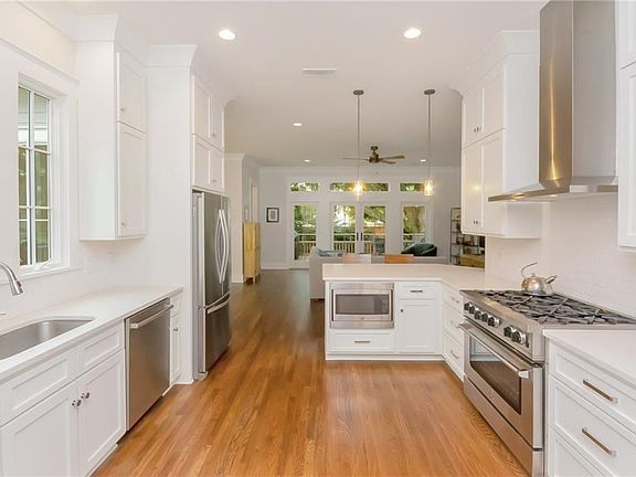 Spectacular 2 year old custom built home in Old Dauphin Way! Built by Stewart and Whatley Builders, one of Mobile's premier contractors, the buyers and builder successfully designed a home that is architecturally perfect for the neighborhood. It has all the bells and whistles offered in a new home, but is loaded with the charm and detail found in an older home. Inside you will find high ceilings, authentic craftsman-style trim, sand and finish hardwood flooring, custom cabinetry, quartz counters in the kitchen and bathrooms, top of the line stainless appliances (two ovens-one gas and one electric, 6 burner range, built-in microwave, dishwasher, refrigerator), walk-in pantry, designer lighting, and gas fireplace. You will love the open kitchen, living and dining areas that offer fabulous views of double lot which is filled with magnificent Oak trees. The master suite is on the main level, and boasts a beautiful spa-like bathroom. There are dual sinks, oversize shower with double shower head, and exquisite finishes. The master closet is very spacious, with walls bolted to the foundation and lined with plywood (could be considered a tornado closet). For convenience, there's a pass through from the closet to the laundry room. An office is connected to the master bedroom which also opens to the front entry hall. Two more bedrooms and a full bath are located on the main level, along with the living room, family room, dining room, laundry room, and mud room. The master bedroom and the other two bedrooms are a split plan. There are two additional bedrooms upstairs plus a full bath. One of the upstairs bedrooms is open to a sitting area creating a very large space, ideal as a bedroom or bonus room. Other special features include high efficiency Marvin casement windows throughout the home, all solid core doors, energy-efficient LED lighting, fans operated by remote control, entire home insulated with cellulose insulation, tankless hot water heater, 2 HVAC units, gutters, dog nook in back hall, oversize deck, fenced yard, and an attached double garage. The house has multiple "smart home" features, and the mudroom closet near the back door is plumbed for a half bath. Call now for complete details regarding the construction of this "must see" property. Listing company makes no representation as to accuracy of square footage.