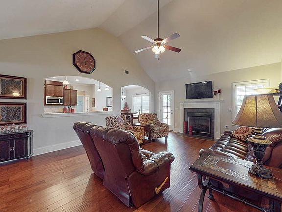 Spectacular & spotless 4 bedroom 3 bath ranch home with fantastic curb appeal! Rocking chair front porch! Extra parking pad! Gorgeous hardwood floors! Open floor plan! Living room with fireplace! Kitchen with arched opening to living room, tile floor, granite countertops, stone backsplash, upgraded gas stove, built in microwave, breakfast bar, pantry & breakfast room with chair rail! Dining room with wainscoting, fabulous columns & nice fixture! Split bedroom plan! Owners retreat with private sitting area with fireplace & access to covered porch, double sink granite top vanity, tile floor, tub, separate shower, water closet & nice walk in closet! Spacious spare bedrooms with great closet space! Laundry rm with cabinet & hanging space! Level privacy fenced backyard with covered porch, patio for grilling out & full sprinkler! Hurry to see this fantastic home!