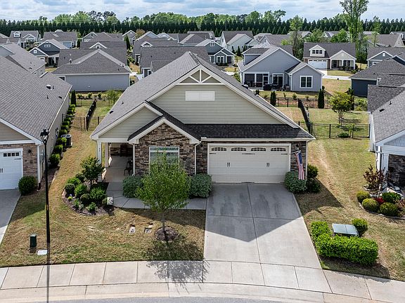 Welcome to easy living in the heart of Flowers Plantation! This beautifully appointed open-concept ranch home offers both elegance and ease in equal measure. Surrounded by warm, friendly neighbors and a vibrant calendar of planned activities, this home is perfectly tailored for those seeking an elevated yet relaxed lifestyle. Inside, the gourmet kitchen is ready for anything- from casual breakfasts to holiday dinners- with granite countertops, double wall ovens, a 5 burner gas cooktop, counter-depth frig and loads of cabinet space. The laundry room is just as thoughtful, with built-in cabinets and counters to keep things neat and organized. The spacious owner's suite is your own private retreat, complete with a zero-entry walk-in shower and a double vanity sink—perfect for busy mornings or winding down after a long day. Outside, enjoy serene mornings or elegant evenings in your screened-in patio, or host guests on the adjoining open grilling patio, framed by iron fencing that surrounds the entire backyard. Additional features include full-yard irrigation, and a meticulously landscaped yard maintained by the HOA, ensuring a worry-free lifestyle. Whether you're savoring quiet moments or engaging with the dynamic community around you, this home offers the perfect blend of luxury and comfort, just a short golf cart drive away from Harris Teeter, Publix, shopping, restaurants, medical and the East Triangle YMCA.