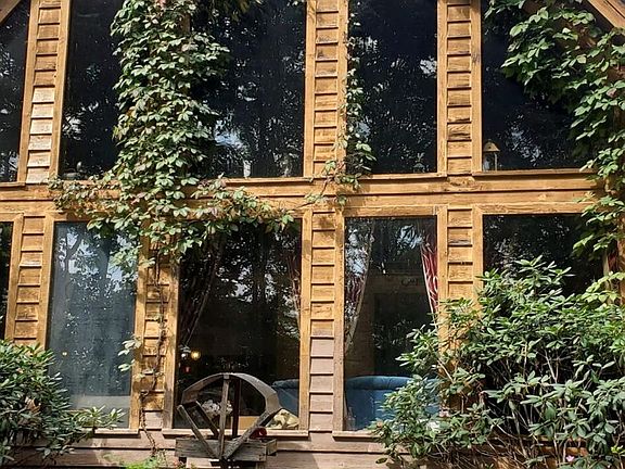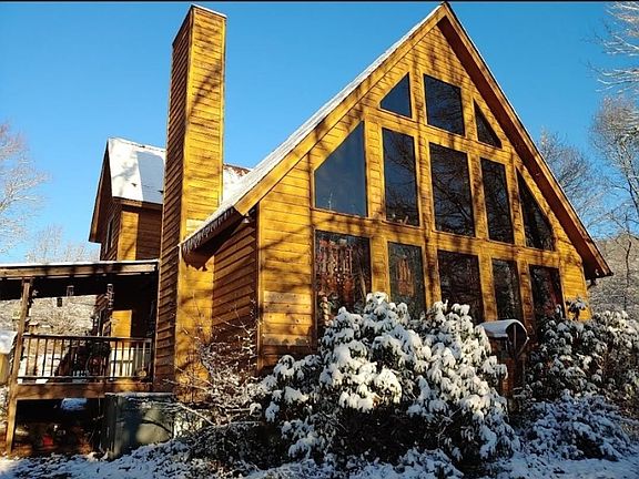 Privacy abounds the rustic home sitting on almost five acres. The mountain front windows brings in an abundance of natural lighting, give this home a very open feeling. Beautiful wood trim and tongue and groove ceiling gives a cozy feeling. Large kitchen with island has plenty of cabinetry. The master bedroom is 20x16 with a sitting area overlooking the great room, master bath has an oversized whirlpool tub / separate shower,and plenty of storage. The sweet little guest home has one bedroom / living room / kitchen area and bath. Could also be an income producing. (720 sqft) The views are beautiful from all the rooms, and the creek runs along the edge of the property and provide a very relaxing sound from the deck and porch.