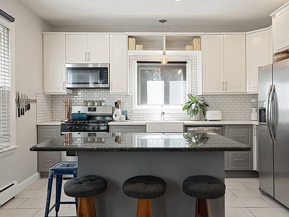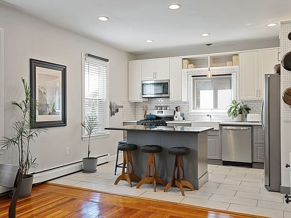 Located midway between the SW Corridor Park's trails and bustling South St., this stylish 1st floor 2 bed offers a flexible floor plan, gorgeous modern & open kitchen, and access to a shaded yard. From the sunny bow-front bedroom (currently set up as a living room), continue down the hallway, featuring double closets, to the spacious second bedroom, the large, renovated bathroom w/ classic subway tiled shower & tub, and its own linen closet. Beyond, behold a stunning open living/dining area & renovated kitchen w/ island, farmhouse sink, backsplash tile & two tone cabs. Built-in floor to ceiling shelving make this an inviting space w/ serious eat-in & hang out potential. A large covered deck overlooks a common fenced yard & patio w/ ample room for gardening, lounging or playing w/ furry friends. Exclusive laundry & storage in the basement. Happy Market is up the street, & JP's best green spaces are minutes from your door - Arboretum 0.6 mi. & a quick 0.4 mi to Forest Hills Station.