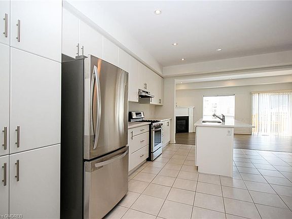 Upgraded Townhouse in the beautiful family community of On The Ridge - No sidewalk - 9ft ceiling with Pot Lights throughout the main floor - The large Kitchen has Quartz Counters, Gas Stove and an inviting Breakfast Bar for entertaining - Open to the Family Room with a fireplace for cozy, lazy winter days - Oak Staircase to 2nd Floor with 3 Spacious Bedrooms, all with Walk-in Closets - Master Ensuite with Frameless Glass Shower and Quartz Countertop - Full Basement ready for you to custom renovate with Large Windows giving lots of light as well as a 3 piece rough in - Balance of Tarion Warranty in place - Make this your home or excellent investment opportunity with AAA Tenants. Minutes to Hwy, great schools, parks, shopping and the new Confederation Go Train Station.