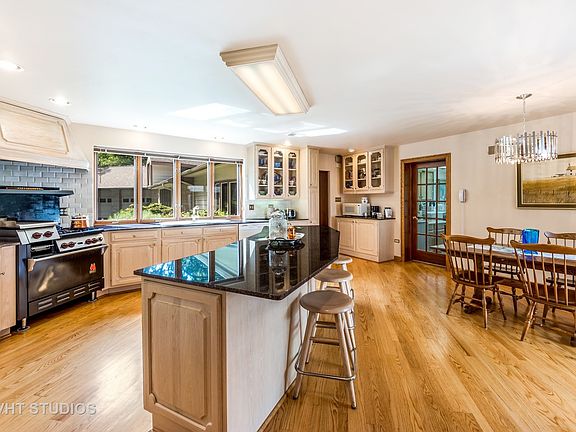 Home is nestled alongside a whimsical oak & hickory tree lined private lane. Upon arriving to the grounds of this 3900+sqft 5Acre RANCH Estate you are greeted by an extended driveway alongside lamp post stoned pillars. Classic charm and modern comfort are prevalent throughout this home. Main entry opens both to the Dining & Living Room to either side, the dining rooms floor to ceiling windows flood the room with natural light. Centered in the middle of the Living Room you find a wood burning fireplace flanked by French doors transitioning to the expansive grounds ideal for entertaining. The richness of walnut is found throughout the Family Room walls, beams and fireplace. The gourmet kitchen boasts a large center island and eating area for plenty of seating. Three spacious bedrooms include a Primary with open concept en-suite: 2 person jacuzzi, steam shower, and a private deck while the 2 additional rooms are located on the opposite side of the home which provide privacy for family & guests. Features also include a 4-car heated garage, circular driveway, and exterior building with gas and electric. Plus so MUCH MORE!! Enjoy everything Barrington Hills has to offer. ***NOTE: 2019 Taxes Appealed - New Taxes roughly $14,265 (HomeStead Exemption Only).***