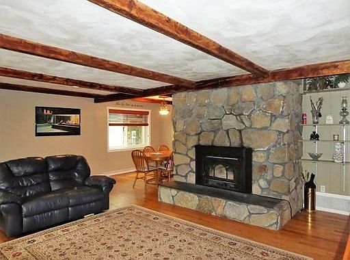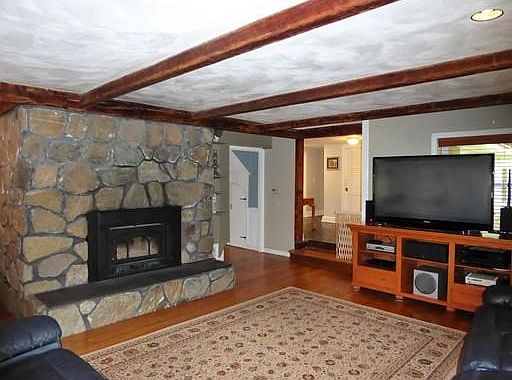 5 Bedroom cape with loads of charm. First floor offers rustic beamed ceilings, floor to ceiling rock wall with wood stove fireplace insert and hardwood floor in the over sized living room and joining dining room. Master bedroom with hardwood floor and door to remodeled (2014) first floor full bath with tub/shower combination and ceramic tile surround, new double vanity with granite counter top and new lighting. Second bedroom with hardwood floor, family room with brick floor to ceiling fireplace. Large galley kitchen with double wall oven, ceramic glass cook top, ceramic tile floor and beamed ceiling. This home also offers fenced rear yard, 2 car garage with electric openers and second floor storage. Home has newer windows (2011), blown in insulation, 200 amp electrical, roof, heating system and hot water tank are among the improvements.