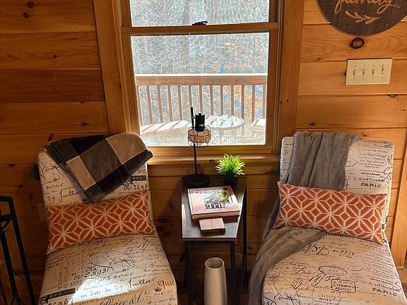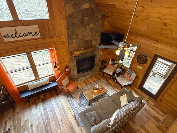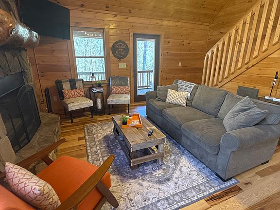 Escape to this furnished luxury appointed 3-bedroom cabin, just minutes from downtown Blue Ridge. With high end decor, updated kitchen & baths, wood burning fireplace, loft sitting area, and a fire pit that seats eight, this retreat offers the best of mountain style and comfort. Enjoy your morning coffee on the spacious deck or relax on the covered front porch. The open living area and loft make the cabin feel bright and spacious. Paved access roads lead to a drive in all seasons. Amenities include high-speed Wi Fi, smart thermostat, central HVAC, and a fully equipped kitchen amenities. Whether you're grilling on the deck or exploring local wineries and hikes, you'll love returning to your peaceful sanctuary each evening. Tenant responsible for internet service, television streaming service. power usage, garbage service, and lawn trimming as needed. Utilities may remain in owners name and shall be reimbursed to owner within 72 hours of tenants receipt of bill. Tenant shall provide photographs of each room upon vacating confirming property is in same condition as move in. Final clean fee of $250 to be collected upon signing lease. Average electric bill will be withheld from deposit until actual bill is received.