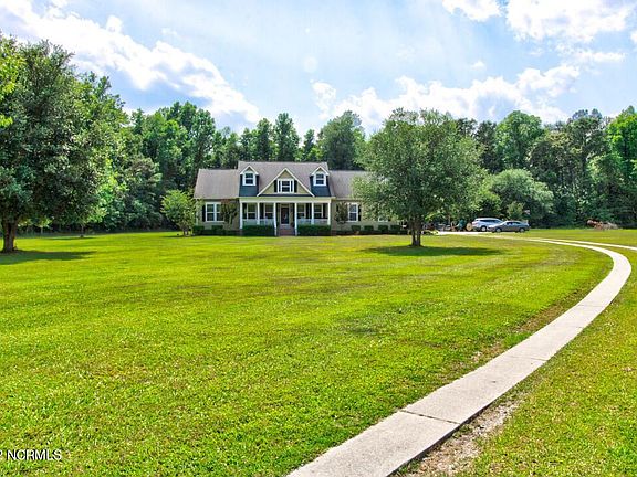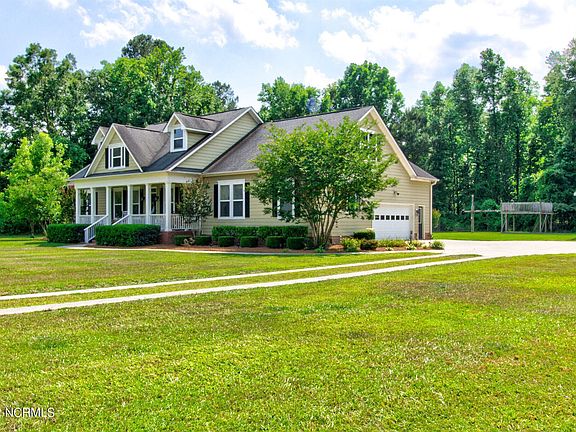 Welcome to excellent living in the country! NO current HOA! Custom built home on over 6 acres, this home is full of charm. 4 bedrooms, 3.5 baths and a large loft area. A large covered front porch greets you, perfect for lounging in rocking chairs during warm months. Enter through the front door and you're met with the foyer, and the spacious dining room is to your right and office/study to your left (currently used as a sitting room). The kitchen is just past the dining room and features formica countertops, white cabinetry, recessed lighting, a hanging pot rack, pull outs for pans, and a built in pantry with glass doors and deep drawers for extra storage. Stainless steel appliances. The living area has a beautiful brick fireplace, and down the hall you will find two bedrooms with large windows, carpet, and shelving/lighting in closets. One of the bedrooms has an attached full bath and the other full bath is located off of the hall. One bedroom also has a recess for a TV, plants, or any decor! The owner's suite is located off of the dining room with a walk in closet with shelving, carpet in bedroom, and a linen closet. The attached bathroom has tile flooring, a large step in shower with a seat, and a double raised vanity. Past the kitchen you can access the two car spacious garage, and also the laundry room with a drop area with hooks for jackets and shoes. The laundry room has cabinetry and a folding area with a large closet. Half bath is located off of this room. Upstairs you will find a bonus area with raised lofts with laminate and carpet flooring. You can also access the huge unfinished area from one of the loft areas. Right now it provides great storage, offers the opportunity for finished space to do with what you like. Off the back of the house is a covered porch and a screened in porch. To the right of house is large carport with unfinished area on top of it that offers storage or the option to finish it as well. Come and see the charm for yourself!