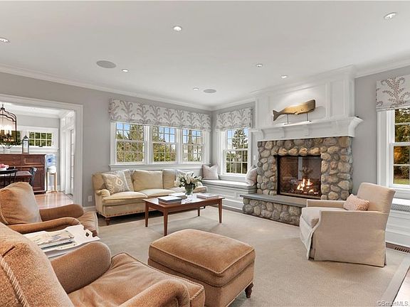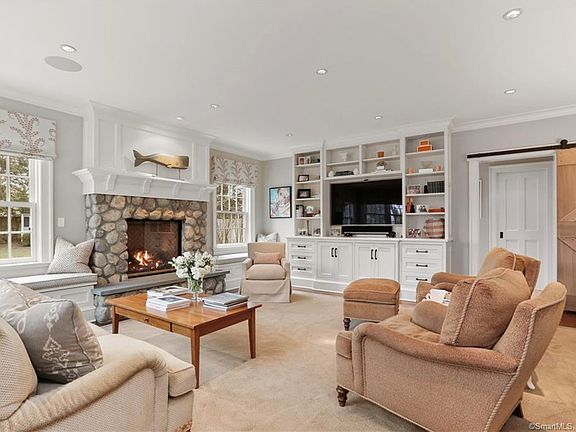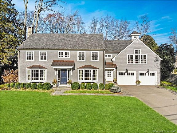 Impeccable in every way, this welcoming five bedroom colonial sited on one of New Canaan's most coveted cul-de-sac streets has been thoughtfully & meticulously designed & transformed recently in 2015 by architect, Neil Hauck & builder, TR Builders of New Canaan. Showcasing bright & open interior gathering spaces while seamlessly blending beautiful 1940s details w/recent renovations & additions, this house exudes a superb quality, comfort, class and beauty like no other. The family & living rooms provide areas for relaxing or effortless entertaining. Flexible office space w/private entrance to backyard creates a quiet area for reflection or study. Inviting chef's kitchen w/crackled custom color subway tile backsplash, high end appliances & stunning quartzite countertops complete a picture perfect room in which to cook, mingle & relax. Glorious master suite includes eye catching windows, spa like five piece bathroom, large walk-in closet w/ample storage & a serene master bedroom w/fireplace. Generously sized secondary bedrooms,recreation room w/rustic beams & built-in desk stations accessed by rear staircase create extra areas for work or play. French doors from the breakfast room access a spectacular expansive & level backyard with fieldstone fire pit, stone walls, blue stone patio & refreshing outdoor shower. Newer mechanicals, roof & full house generator. Pristine move-in condition, private backyard, and convenient location make this property "in-town living at its best." All measurements approximate and subject to buyer verification. Audio/visual surveillance on site.