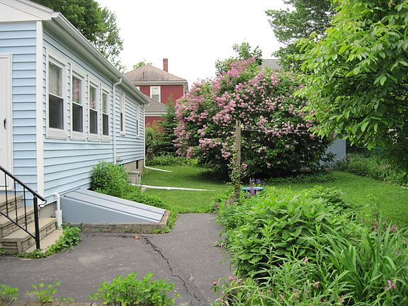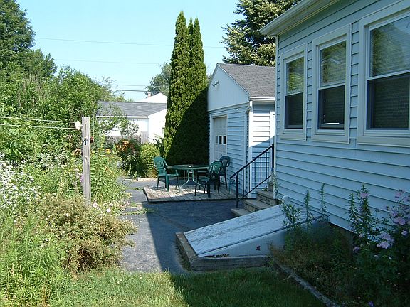 Ranch with detached 2 car garage with storage lofts, corner lot on quiet street. Fenced in back yard, a few blocks from bike path and schools, 2 bedroom, 1 bathroom, kitchen, living room, dining room, full basement with workshop, laundry room with updated washer & dryer and partially finished room. Gas heat, pellet stove. Finished hardwood floors in dining room and bedrooms, living room is carpeted. Beautiful oak cabinets in kitchen with updated appliances including dishwasher. Updated windows, perennial gardens and a shed. Neighborhood Description Quiet, friendly residential neighborhood.
