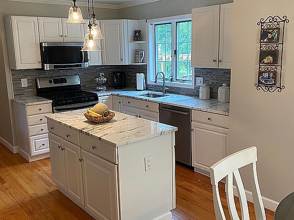 Country living at its best in this beautiful well maintained 4 bedroom center hall colonial situated on over an acre of secluded property. Enjoy your morning coffee and watch the sun rise from your rocking chair front porch that runs the length of the house. As you step inside you’ll be greeted by a beautiful high ceiling entry way with a wrap around stairs leading to the 4 bedrooms of the home. The master is a large room with walk-in closet and it’s own master bath attached. Master bath has a soaking tub and a brand new beautifully tiled walk in shower with custom frameless glass doors. Brand new granite vanity tops as well. The three other bedrooms are all of decent size and with plenty of closet space. A full bath with granite vanity tops is also located on the second floor just outside the three bedrooms. The kitchen is decorated with white cabinets and brand new granite counter tops. The center island is perfect for preparing meals or gathering with the family. The kitchen is equipped with all stainless steel appliances as well. As you eat at your breakfast nook you can admire the gorgeous backyard thorough the sliding glass doors that exit onto your large deck perfect for entertaining. Your formal dinners can be enjoyed in your spacious dining room right off the kitchen. Enjoy watching TV or entertaining in your family room right off the kitchen. Cozy up to your wood burning Fireplace as the cold winter nights arrive. Enter the Formal Living Room/ Recreation Room through the double set of French Doors either from family room or entry way. A powder room is also located on the first floor before entering into your two car attached garage. The house has real hardwood flooring throughout. The finished basement consists of a very large entertaining room and another room that can be used as an office or hobby room. A washer and dryer is located in the basement area as well. In your fenced in backyard you can enjoy the oversized deck or hang out with family in your custom made Pergola. There is also an oversized custom built shed for storing all your patio furniture and any other equipment that need storing.
