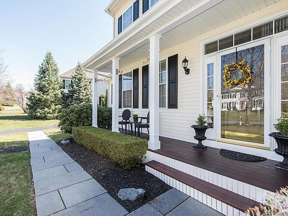 BUCKINGHAM IN AVON - Impeccably maintained four bedroom home offers comfortable living, inside and out. The Ellsworth Grand features an open kitchen and family room with surround sound and sliders to a beautiful stone patio overlooking the professionally landscaped yard. Hardwood floors throughout the first floor are immaculate and every room has large windows with lots of natural light. The master suite with walk in closet has french doors to a nursery or private sitting room, and the laundry room is conveniently located near the bedrooms. The lower level is professionally finished and boasts a 27X22 ft room with a full bath, perfect for a media room, playroom or guest room. There is also a private office or craft room. The grounds are perfectly maintained and have an irrigation system in both front and back yards. A privacy fence makes the backyard a sanctuary. The clubhouse & fitness center is a short walk across the village green. The Buckingham community is adjacent to playing fields, a high end playground and walking trails.