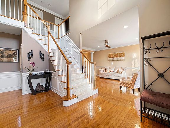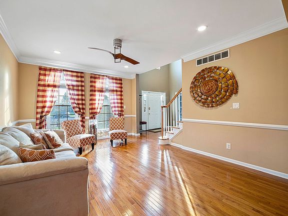 Fabulous stately brick front Colonial in sought after Washington Greene. Professional landscaping and paver walkway lead to 2-story foyer with beautiful hardwood floors and decorative moldings. The gourmet kitchen features granite counters, tiled floors and backsplash. Two-story great room with wood burning fireplace and double French doors leading to spectacular light filled sunroom. Study or possible 5th bedroom on first floor. Professionally finished basement with half-bath is perfect for large gatherings. Master suite includes oversized sitting room, bedroom with cathedral ceiling, enormous walk-in closet, full sky lit bath with stall shower and soaking tub. Exceptional outdoor entertaining opportunity on oversized deck overlooking wooded property. This home will exceed your expectations.