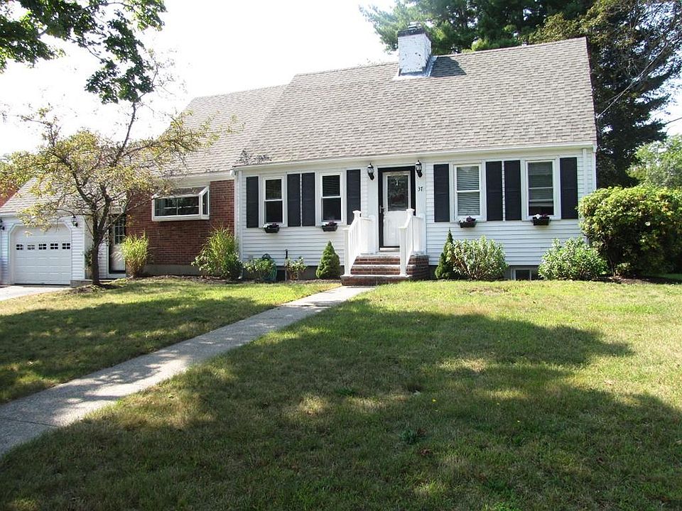 Pride of Ownership reflects on this beautiful expanded Cape located on a dead end street near Hanover line. Features include bright & sunny kitchen with greenhouse window, wall oven & range, and displays a custom built kitchen nook with built-in wine rack, and flows into beautiful dining room with beams and hardwood floors. Also on the First floor is beautiful living room with fireplace and Bow window, new full bath with 2 ample sized bedrooms. Second level has New full Bath, Large Master with lovely built-Ins. There are two more good sized bedrooms, one does not have closet with an armoire would make a nice size bedroom or office. Plenty of storage with a nice size closet in the Hall way. One car garage has room for storage above. The 3 Season porch with a skylight leads out to a wrap around trek deck. Back yard has nice level lot , which leads to Tennis court which could be revamped and enjoyed playing on!! Must See Property. Bonus Refrigerator, Washer, Dryer, Stays!