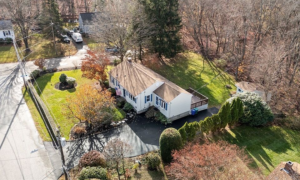Don't miss your opportunity to see this beautifully maintained home nestled in a well established neighborhood. As you step inside, you'll be greeted by a spacious living room with hardwood floors and bow window. The three bedrooms have replaced windows, neutral tones and hardwood floors. The updated bathroom offers a white tiled shower and granite sink. The upgraded kitchen boasts loads of granite countertops and peninsula, upgraded solid maple cabinets, ample storage, and spacious dining area with new Anderson sliding door. Off the Kitchen awaits a solid surface deck that leads to a large level double lot that is perfect for entertaining, or gardening. Additional features include central air, irrigation, mature manicured landscaping, remodeled kitchen, replaced windows, over sized shed w/ electric and the full basement has a family room, office, and hobby area. The oversized driveway is new and has ample parking. Conveniently located near 95 and MBTA.