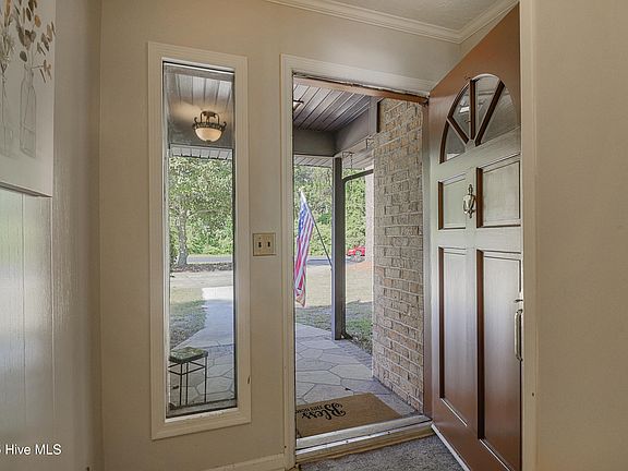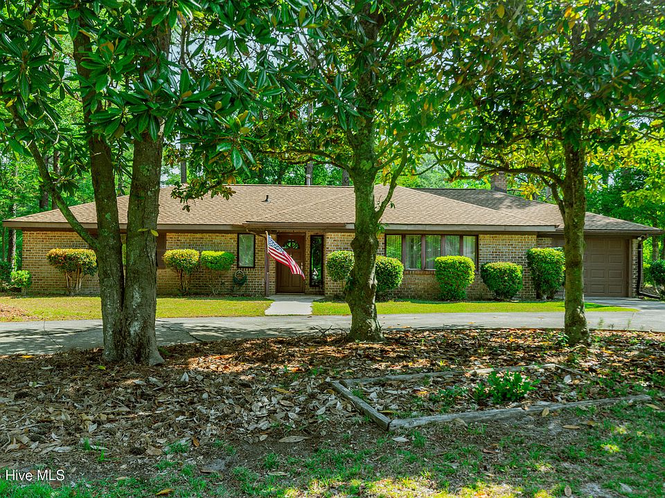 Opportunity Awaits! A charming all-brick home, nestled among beautiful mature treelined streets in a highly desirable community with a low HOA fee, is ready for your personal touch. Featuring a circular driveway and a one-car garage, this property offers both curb appeal and functionality. Inside, you'll find a spacious living room with a wood burning fireplace and sliding doors to a large patio. This home has 2 bedrooms plus a large flex room with a bay window — perfect as a third bedroom, office, or den. The inviting Carolina room off the kitchen is complete with a skylight, filling the space with natural light and provides a peaceful spot to relax year-round. The master suite offers a walk-in closet and a private en-suite bathroom. Additional highlights include a practical mudroom conveniently located off the laundry room and a brand-new roof replaced in 2023, giving you peace of mind for years to come. If you're looking for a solidly built home with character and flexible living spaces in a picturesque neighborhood, this is it! This property is a true diamond in the rough. With some updating and repairs, you can unlock its full potential and create the home of your dreams. Carolina Shores homeowners enjoy an active lifestyle with a clubhouse, pool, tennis, pickleball and more. Carolina Shores is located minutes from the shopping and restaurants of downtown Calabash, only 6 miles to Sunset Beach, and a short drive to the attractions of the Myrtle Beach area.