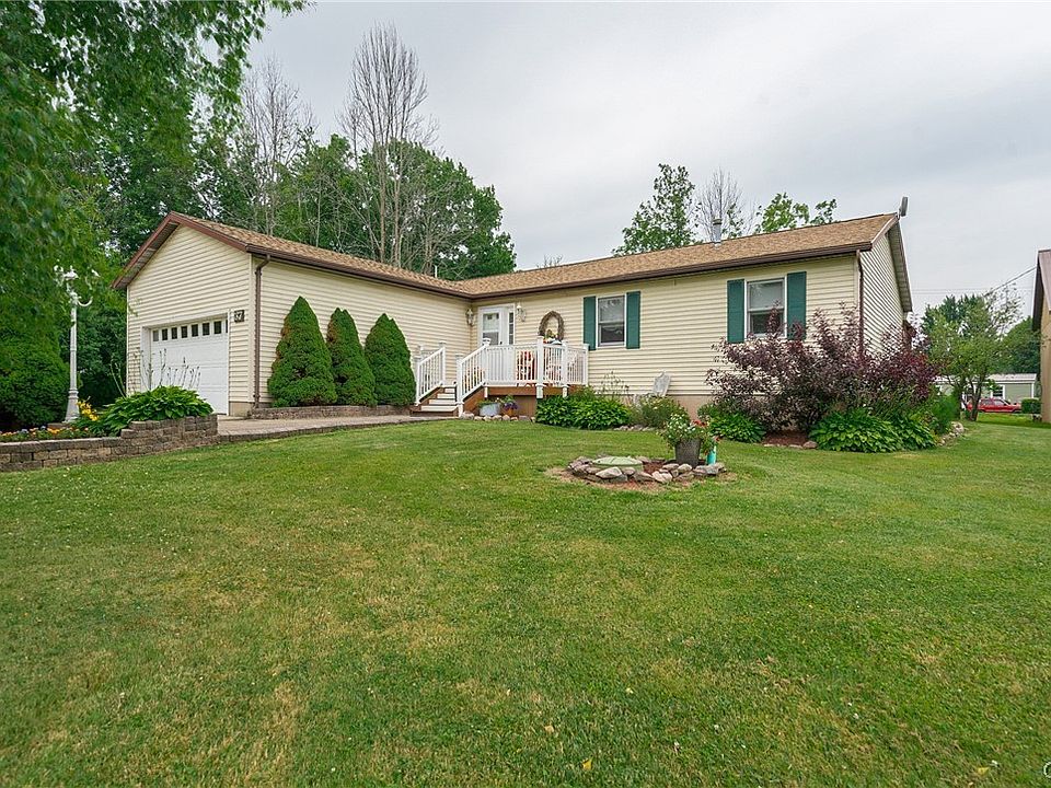 Welcome home to this meticulously maintained open floor plan ranch complete with a large finished basement, many updates, over 1/2 acre of land, a pool, deck, master bath, and so much more! Tastefully and artistically decorated, this home shows very well in person. Some of the updates throughout the years include 5 year old roof (30 yr arch shingles), Trex front porch, all HVAC has been updated, large no maintenance concrete driveway, completely decked above ground pool with a screened in 3 season room off the master, making this a place to truly relax and entertain. The basement has been fully finished adding approximately 1100 square feet of space to enjoy and entertain (custom built bar, large room for entertaining, several bonus rooms and plenty of storage). Some unique touches include custom stenciled bathroom floors (where can you find this?), custom trim doors, truly gorgeous landscaping, quaint potting shed w/lawnmower storage/covered porch/fire pit, and much, much more! So much has been done that this home is ready to enjoy!