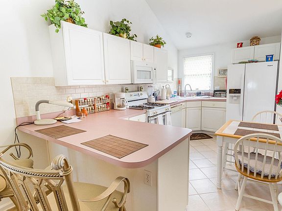Look no further for your next home at the shore! With 3 bedrooms, 2 full baths, soaring cathedral ceilings throughout, open floor plan, 2-car garage, and private rear patio for relaxing evening dinner parties, all close to the beaches and bay, this home delivers. Enjoy easy first floor living with large great room boasting high ceilings, lots of sunny windows, Pergo flooring, and gas fireplace extending into the spacious kitchen. A wall of white cabinets, tile backsplash, spacious peninsula with seating, large pantry, self-cleaning gas range, dishwasher, large sink with arched faucet and garbage disposal, side by side refrigerator with ice maker, and tile floor provide ample conveniences for the chef, while easily visiting with others. The huge dining room will be perfect for hosting special meals, with gas fireplace and French doors to the patio, that fill the space and high ceilings with light. The primary bedroom is large, with spacious walk-in closet, arched built in etagere storage with glass shelving and accent lighting, high ceilings, and en-suite tiled bath with large vanity and tub shower. Two additional bedrooms with roomy closets (one is walk-in), full hall bathroom, and convenient laundry/utility/mud room complete this great floor plan. The attic is floored for storage. The spacious 2-car garage has a garage door opener. Outside enjoy a huge 75x100 lot which backs to a natural area and offers a large patio, mature landscaping, sprinkler system, enclosed outdoor shower, shed with workbench and ample storage, and a fenced in area ready for your vegetable garden. Recent updates include AC 2019, window blinds 2022, new roof on house + shed 2023. Just minutes to Cape May or Wildwood beaches, the ferry terminal, wineries & breweries, and shopping, this home offers affordable living at the shore, and close to everything. You don’t want to miss this chance to make it your own!