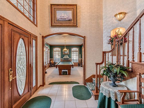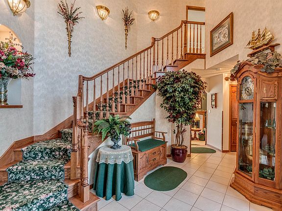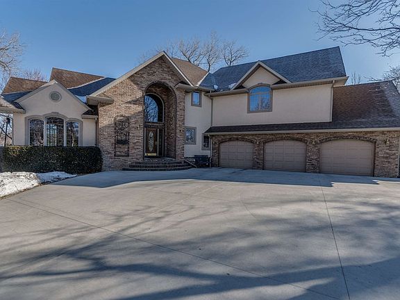 This beautifully well-maintained custom home was built in 1994 by Gurholt Construction, one of the premier home builders of that time. It's located directly on the Missouri River in Captains' Landing Township, which is a quiet, friendly community conveniently located between Bismarck and Mandan. The 1.07 acre property has 200 feet of river frontage which has been professionally rip-rapped in accordance with the U.S. Army Corps of Engineers guidelines. There is a unique rock stairway built into the rip- rap where you'll launch your private dock. The entire property is meticulously manicured and cared for. It features an East facing private back yard that is completely fenced in with maintenance-free Jerith fencing. The unique landscaping includes paver walkways that guide you around numerous block retaining walls that hug the natural curves and elevations of the land as you stroll along the 150 foot pond system. You'll enjoy the sounds of 2 waterfalls that flow into 3 ponds that have streams connecting them, all surrounded by beautiful perennial plants and flowers. There are 3 bridges that lead you over the streams, allowing access to the in-ground fire pit or to the banks of the river. Off to the side of the ponds, there is a small, finished garage/she shed that has electricity, overhead garage door and epoxy coated floors. As you enter the interior of the home through the front entrance, you'll immediately see how it boasts in its original, traditional charm with beautiful oak woodwork, solid oak raised panel doors, and windows everywhere that bring in a world of natural light. To your left, you'll step down into the billiard room that is finished with wainscoting and crown molding. Next, you walk through a formal dining room which has a sliding door for access to the main level deck. From the dining room, you'll step up into the kitchen, which has beautiful solid oak cabinetry with slide out shelving, a center island that has a sink and a Jenn-Air glass cooktop. There is a Jenn-Air double oven and microwave, a newer Bosch dishwasher and a Whirlpool side by side fridge. There's a breakfast nook surrounded by windows that give you a clear view of the back yard and river. Directly off the kitchen, you take a step down into a formal living room that has a gas fireplace and french doors leading to the massive main level deck. The decks are maintenance free Trex decking with lighted wrought iron railings and they offer ground access via stairways on each end of the deck. As you leave the living room and head towards the door to the garage, you'll see a conveniently located half bath. The heated garage has room for 3 cars and measures 1056 feet, has fluorescent lighting, water, 2 floor drains and floors that are finished with epoxy coating. The lower level has 2 bedrooms, one with a walk in closet. There's a full bath with a tub/shower combination, a family room with a brick, wood burning fireplace and a wet bar. There is a large sliding patio door in the family room that takes you out to the ground level, covered patio that features a centered, cascading fountain with flower garden. Off to the side of the patio, you'll find a hot tub tucked in the corner, which is only a couple years old and is included with the house. Also in the basement, you'll see plumbing for another laundry area and storage room and closets. Upstairs you'll find the large master bedroom and ensuite bathroom with double sinks, walk-in closet, a heated whirlpool tub, and a separate toilet/shower room. Across from the master bedroom is a laundry room/half bath with a laundry sink and overhead cabinets. You'll make your way down a short hallway and step down into a den that has a beautiful wet bar with overhead cabinetry, recessed lighting and back shelving. Just off the den is a bonus room with a closet that could be used as an exercise room or a nursery. There is a large sliding door in the master bedroom that leads to the upper level private deck, which wraps around to a door that leads back into the den. This is the perfect place to enjoy a cup of coffee in the morning or a glass of wine in the evening while you gaze at the beautiful back yard or just enjoy the marvels of river life. Additional amenities include irrigation system, a huge garden spot, central vacuum system, Bose sound system, security system, Generac generator, expanded electrical panel and newer driveway.