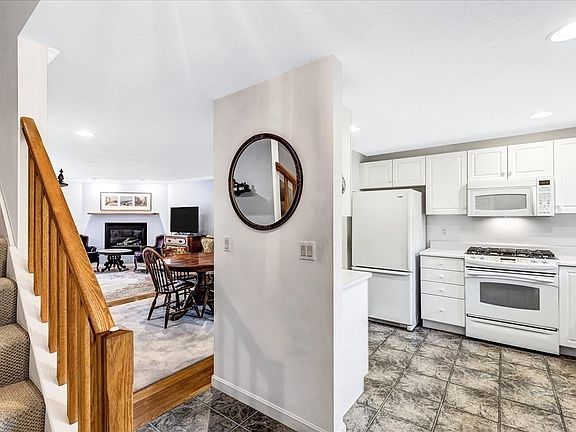 This open floor plan end unit townhome in Woodneck Hills is privately located in close proximity to Falmouth's Main Street shops, restaurants, beaches and adjacent to the Shining Sea Bikeway! The first floor encompasses a primary bedrm suite with skylit cathedral ceiling, full bath and two large closets. A hallway laundry closet, guest half bath and open concept kitchen, livingrm and dining area are also on this level. The second floor is pleasantly roomie with bedrm, full bath and 3rd bedrm/den, plus a walk in attic. The lower basement level has an added bonus of a one car garage and walk out unfinished space for storage and more. Wood, tile and carpeted flooring, gas fireplace, extended large deck, parking at your front door as well as private extra parking by garage. Some newer appliances, front load washer and dryer and dishwasher are added bonusses. Efficient gas heat and central air and hot water tank have been upgraded. Ready for immediate purchase.