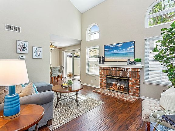 Welcome home to the highly sought-after Mission Greens community. Home is turnkey and ready for move in. As you enter this home through the double doors, you will notice the wood flooring, vaulted ceilings, and an open bright floor plan with numerous large windows, letting in plenty of natural light. This lovely 3 bedroom, 2 ½ bath will not disappoint. Spacious kitchen with granite counters, white cabinets and stainless-steel appliances. Dining area leads to your private patio with vinyl fencing. Great for reading a book or enjoying your morning coffee. The living room, with vaulted ceilings and wood burning brick fireplace, is perfect for relaxing and large enough for entertaining. Updated powder room downstairs includes an additional closet. Master bedroom is complete with two spacious closets and master bathroom with dual vanities, and custom tile shower. The spacious second and third bedrooms, with custom closet doors, and share a bathroom with custom tile bathtub. The home includes all new framed windows, designer paint, 2 car attached garage, and wood flooring. Walking distance to the Rancho Santa Margarita Lake and Beach club. Close to hiking trails, parks, freeways, movie theaters, shopping and restaurants.