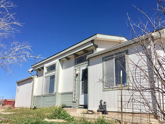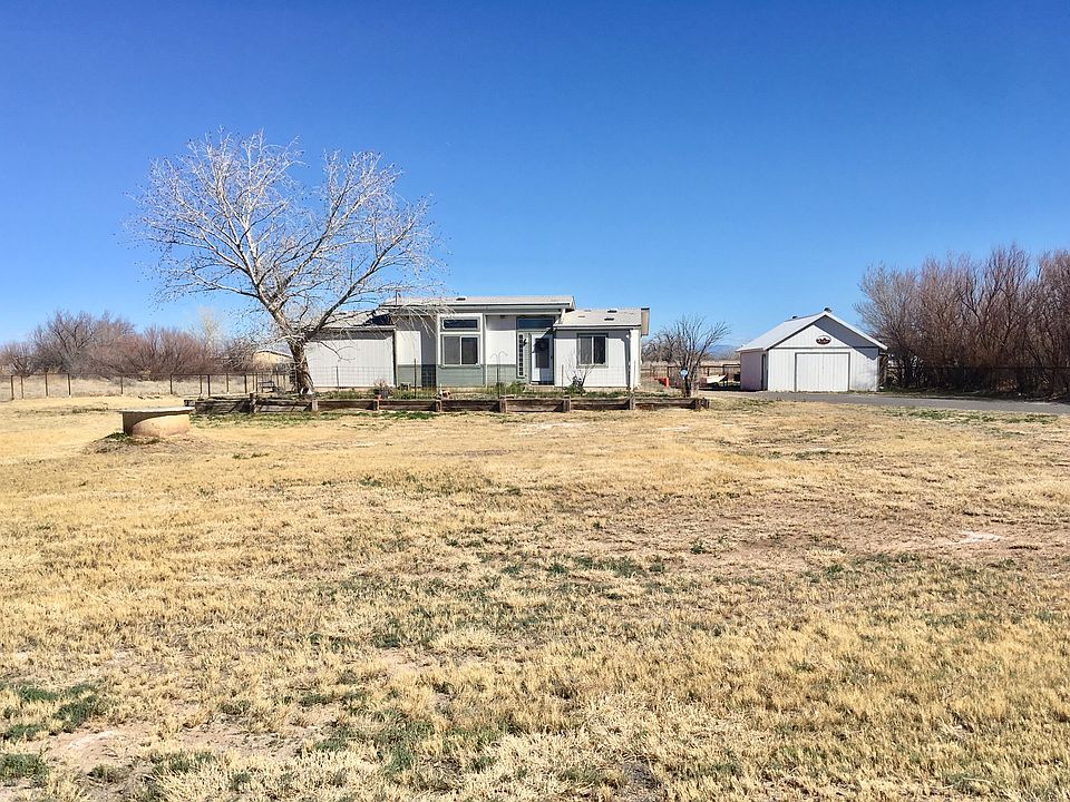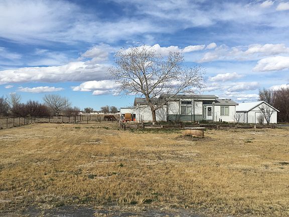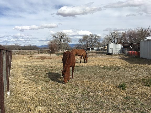 Efficient, move-in ready home. Wood burning stove, vaulted ceilings and vinyl deck that runs entire length of north side of house. Separate 600 sq. ft. garage with new metal roof and attic, hay barn, horse pen with shelter. Small animal barn has three separate stalls/outdoor fenced-in runs with attached insulated tack room and water supply. Entire property has 5 ft pipe fencing with buried horse wire, so is very secure for any kind of pets and livestock. Brand new irrigation well for two separate pasture areas. 3 minutes from I-25. Washer, dryer, refrigerator, microwave stay with house.