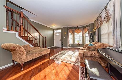 Colonial w/4 beds & 3.5 baths. HW floors & crown moldings thru-out. Recessed lighting. EIK features granite counter tops, center island w/breakfast bar & walk out onto deck. Custom cabinets in kitchen & FR; gas fireplace in FR. Mstr has tray ceilings & an attached master bath. Fully finished basement. Attached 2 car.