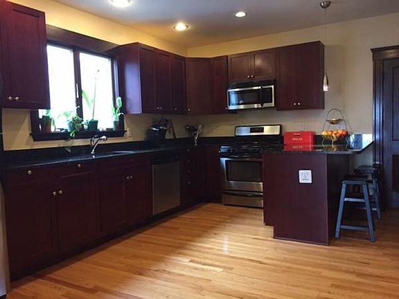 Perched high atop Metropolitan Hill on quiet dead-end street, 37 Cedrus offers homeowners a 6-room, 3-bed, 2-bath 2nd floor condo renovated in 2008 and featuring abundant natural woodwork, city views, parking, storage, in-unit laundry, outdoor space and more. Cook/dine/entertain in huge granite/stainless kitchen with peninsula and ample eating space, opening to formal dining room with wainscoting and built-in china cabinet. Relax in comfortable livingroom with fireplace and access to 30+ ft front deck with Boston skyline view. There is also a private rear porch overlooking the common yard. and an exclusive use 1400+ sq ft walkup attic for storage and possible expansion. Three generous bedrooms including master suite will comfortably accomodate a larger family, guests, or added space for office/study/den. Two car tandem parking including one garage space complete this offering. Just a short walk to school/playground and 34/40 bus lines, close to Roslindale Village and commuter rail.