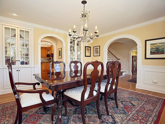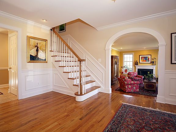 Elegantly poised on a premier neighborhood street, this handsome center hall Colonial was totally renovated and expanded in 2000. Paneled wainscoting, beautiful hardwood floors, crown moldings and arched entries left and right of the foyer set the tone for the rest of the home. An inviting step-down living room is enhanced with deep, oversized windows on two sides, centered with a gas fireplace and traditional mantel at the far end. Two custom-built recessed china cupboards and wainscoting add distinction to the formal dining room, with an archway that leads to the kitchen. A first-floor home office offers a private respite, while a delightful sunroom enjoys oversized casement windows on three sides with pretty property views and access to the lovely rear yard. A spacious first-floor family room with neutral wall-to-wall carpeting and picture windows on two sides offers yet another venue for leisure gatherings, complete with a butler’s service area and under-mount wine fridge for enhanced entertainment. The kitchen is spacious and inviting with an open concept floor plan, featuring rich honey-hued custom cabinetry that contrasts with sleek granite countertops and high-end appliances. There’s a work station, a large seated island at its center and a brick gas fireplace and hearth that add warmth to the breakfast area. Sliders open to a private paver patio surrounded by stone knee walls and beautifully landscaped grounds A nearby half bath, a well-equipped laundry room and a mud room with built-in cubbies make easy living even easier! High ceilings add space and grace throughout the second floor hallway and bedrooms. Each one is anchored on pristine, neutral wall-to-wall carpeting, with distinctive gable windows and double or walk-in closets. The master suite boasts an expansive custom-fitted walk-in closet that wraps itself around one side of the room, along with additional undereave storage space. The lovely master bath has a deep, jetted tub poised beneath a pretty ocular window, with twin vanities, a shower and separate commode. A full hall bath serves two of the bedrooms, while a Jack and Jill bath connects two of them. The finished lower level recreation room provides additional leisure living, complete with a walk-in pantry , ample storage space and convenient access to the two-car attached garage. Located in (Desirable or sought after) neighborhood in Chatham’s award-winning school district, you will find everything you wish for, and more, in this fine suburban home.