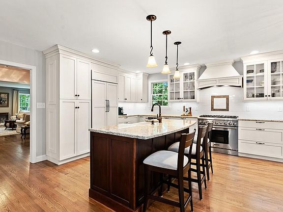 Wellesley Hills! An incredible combination of renovated/expanded home, flat backyard & ideal location! This home has been truly transformed. Open kitchen with center island, wet bar area and dining area. Window bank along entire back of home with access to patio with pergola and gorgeous flat yard on 20,000 sq ft lot. Family room with fireplace and built-ins. First floor with additional living room with fireplace and dining room plus private first floor office. 2 car garage and large mudroom with laundry. New master suite with cathedral ceilings, walk-in closet plus additional closets/built-ins and spa-like master marble bath. Second floor sitting area with bonus office nook. 3 additional bedrooms and 2 full baths. Finished lower level perfect for playroom and exercise plus huge storage. Impressive front entrance with stone pillars and circular front drive. Over 4600 sq feet of "new house" all just a short distance to the train, Wellesley Hills restaurants, coffee and shops!