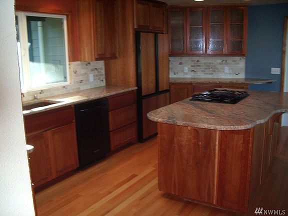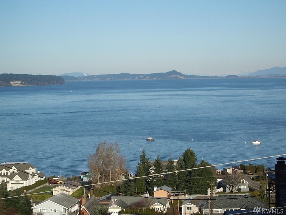 Expansive Sounds views from this Charming North end location Home. Three bedroom/office den home. Living area on Main level with Large custom kitchen, with large bonus room and bedrooms on lower level with wood burning stove. Granite counters all appliances included. Open to decks for outside dining or simply enjoy the view. Attached large garage. Nice North end location in Buena Vista area.