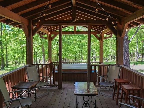 Timber Creek Cottage is a cozy 4 bedroom 2 1/2 bath log home is for sale in Broken Bow, OK. Home sits on 1.5 wooded acres and backs up to the National Forest offering complete privacy. The kitchen, dining room and living room are open concept with vaulted ceiling in the living room. French doors open onto 1000 square feet of covered deck featuring a hot tub, seating and a dining area. Kitchen has been completely remodeled with subway tile back splash, unique wood counter tops and stainless appliances! This cabin is located just minutes from Broken Bow Lake, the golf course and other activities in Hochatown and is a great vacation home or investment property with good rental history. The property also boasts a 900 sq ft insulated shop building that could be used for a variety of purposes! Additional acreage is also available for sale! Priced to sell quickly!