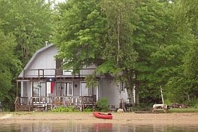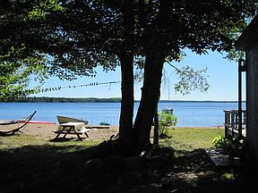 #1589) Wide open views into the heart of Cathance Lake with sand beach! Situated on 2.58 acres, this gambrel style home has 2BDR/2B, K/L/D and two decks. Two story gambrel garage offers upstairs space for the addition of guest suite.