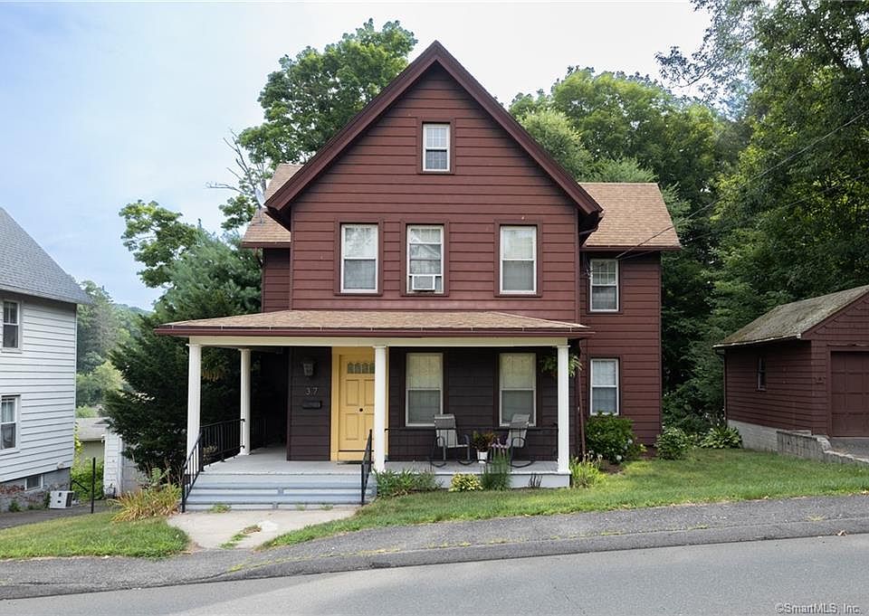 Welcome home to this house with a remolded and updated eat in kitchen with custom cabinetry, stainless steel appliances, granite countertops and an Island. Main level is an open floor plan with refinished hardwood floors, crown molding and sliders to a private deck. The upper level has refinished pine hardwood floors in all 3 bedrooms, the primary bedroom has an extra room for a home office or dressing room. The walk up attic can be finished for more living space. Thermopane windows, newer hot water heater. Laundry is located in the basement which has newer windows and a walkout to the yard. Close to route 8 and shopping.
