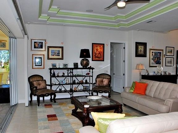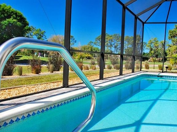 This amazing home, built in 2013, would cost over $600,000 to duplicate today. It's a magnificent, high-end luxury home with nearly every upgrade imaginable. And dozens beyond your imagination. Like the 24-carat, gold-plated, crystal chandelier over the foyer. The virtual tour includes 100+ HD photos and 68 upgrade packages costing up to $20,000 each. The location is amazing. It's on an oversized tip-lot facing south with stunning, panoramic golf-course views. The lanai and pool deck wrap the entire width of the home to capitalize on these mesmerizing vistas. And, this home is built like a fortress. It's 100% protected by hurricane-impact windows and sliders with a 2nd layer of protection from automatic, Roll-Safe shutters. All shutters can be opened and closed simultaneously remotely with a single click! The master suite occupies the entire west wing and has 2 full master baths with Roman Showers. The east wing includes an en-suite and 2 bedrooms, one of which can be configured as a 3rd en-suite via a pocket door. Features include 20" porcelain tile throughout; solar & heat pump for pool; designer kitchen; top-grade Samsung appliances; electric garage & entry door screens; granite counters in kitchen, laundry, & 4 full baths; irrig well; pavers; Mano Block; 66 gal H2o heater; prewire for 1 gig ethernet; frameless glass showers; thermal windows/sliders; Roman blinds; insulated garage door & attic; etc. These are just a sampling! CLICK the VIRTUAL TOUR for ALL UPGRADES & 100+ PHOTOS! Furnishings available.
