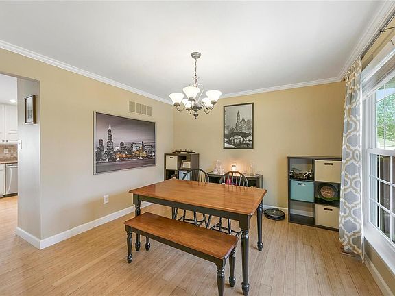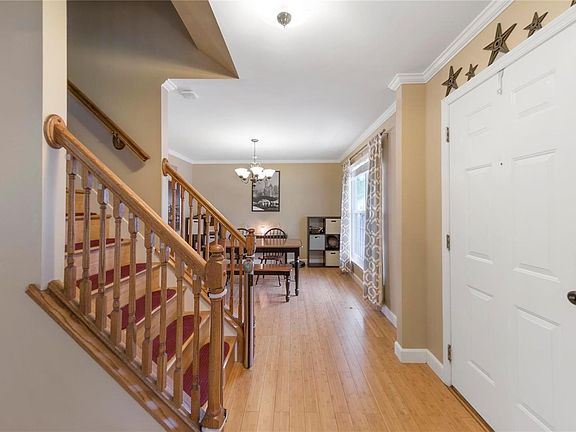 What a find! Beautiful, updated, well maintained 2 story in awesome Twin Chimneys. Charming front porch on this 2 story beauty! Awesome Bambo wood floor throughout the main level. Updated kitchen with newer stainless appliances, crown molding, recessed lighting. Breakfast rm with sliding door to the large deck overlooking the level fenced back yard. Formal living rm and formal dining rm w/crown molding. The main level family rm features large bay window & a brick fireplace with gas logs. There is also an updated half bath & a main level laundry! Upper level features a spacious master suite with walk-in closet & a beautiful newly remodeled master bath with double bowl vanity, tub and the much desired oversized walk-in shower! Completing the upper level are three additional bedrooms and another full bath. The lower level is finished with family rm and rec rm plus a half bath. Newer windows. Thermal pane patio door with internal blinds, insulated garage door.+++ Dont miss this one!