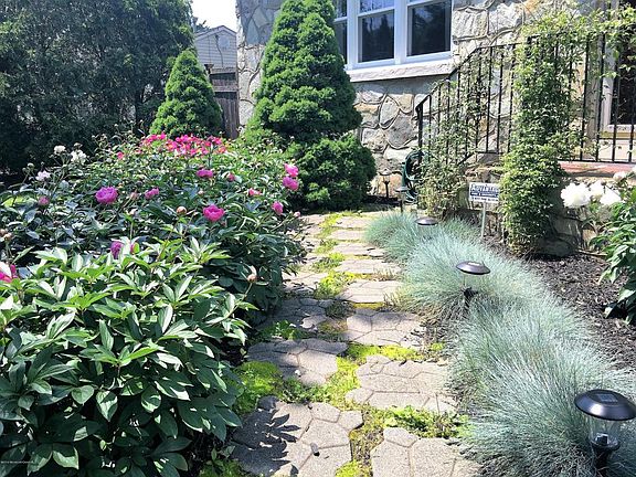 A real treasure, nestled in a beautiful setting with magnificent gardens framing this updated, charming home. Birdseye maple floor with inlays complement newer kitchen with custom maple cabinets, silestone counters & under cabinet lighting. Sunlit dining room can fit a crowd & has French sliders to newer Trex deck overlooking private yard. Wood floors, wainscoting & wide baseboard molding throughout first floor. Generous size master bedroom with walk-in closet and alcove ideal for home office or sitting area. 2 additional bedrooms upstairs. Full basement, attached garage & great location for this picture perfect home.