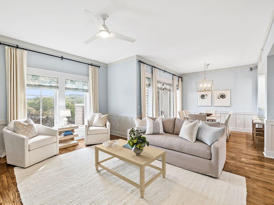 This beautiful WaterSound condo has undergone a dramatic transformation with new hardwood flooring in all the bedrooms, updated furnishings and stunning new decor and lighting by Laura McKee of L. Hamilton & Co.. Situated in the gated community of WaterSound Beach, the location and floor plan are hard to beat. The kitchen is the heart of the action with freshly painted white cabinets complementing granite countertops, a Sub-Zero refrigerator, Viking gas range and stainless steel hood. Three spacious ensuite bedrooms and three full baths plus a half bath provide expansive accommodations for family and visiting guests. The open great room has ample space for entertaining with a dining area and a spacious living room . Half-height wainscoting adds a touch of classic detail while French doors blur the the line between indoor and outdoor living. The spacious porch, nestled in the dunes, is the perfect spot for enjoying cocktails and evening breezes. The master bedroom has its own access to a private screened porch, sharing the same unspoiled views perfect for morning coffee. A jetted soaking tub and separate shower enhance the generous master bathroom. This condo has been lovingly maintained as a second home and has never been rented. It includes a large attached garage and use of a pool reserved exclusively for Compass Point owners and guests. Boardwalks lead over the dunes to the mile-long white sandy beach for morning strolls, shelling and swimming in the turquoise water of the Gulf of Mexico. Hop on your golf cart and explore the outstanding amenities that include A fitness center, parks, pools, dog park and seven miles of walking trails. Enjoy shopping and dining along 30A before returning home to the tranquility, privacy and security that this upscale condo affords.