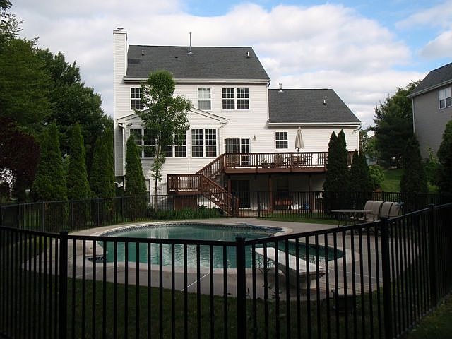 Outstanding is the only way to describe this home in prestigious Oxmead Crossing! Comes with all the bells and whistles. It features hardwood floors, a formal dining room with crown and chair rail molding, custom paint throughout. Central vacuum system, central radio-intercom-music system, house is wired for Cable/Ethernet/Phone to every room in the house via a central distribution system The formal living room is open and inviting. The gourmet kitchen features upgraded appliances, maple cabinets, an island, work area, and upgraded tile flooring. Appliance package is included - refrigerator/washer/dryer. Custom window treatments throughout the house - vertical blinds. Every bedroom and the family room has Hunter ceiling fan. The master bedroom features a sitting room, large closet, garden tub and beautiful tile work. The office is centrally located in the house with glass pained doors. The large family room is extended and has a natural gas fireplace with a blower. The 2 car garage is fully insulated, heated with epoxy on the garage floor - door on the side of the house. The wet bar joins the formal dining room and the kitchen. The finished basement has a walkout to the back yard/pool and is great for entertaining the overflow from the family room. The outside oasis boasts a concrete pool with custom inlaid tile and fence around the pool. The pool is heated (Gas) and and has a Polaris 960 pool cleaning system The yard is one of the largest in the Oxmead development. Utility shed at rear of lot. Large rear wooden deck with stairs down to the pool area. 9 zone sprinkler system. 2 zone heater/air conditioner with digital 7 day thermostats. The house is protected with a 6 zone security system with 4 keypads and 1 remote - currently serviced by ADT. Neighborhood Description Very quiet, close to a shopping and great access to 295 and NJ turnpike.