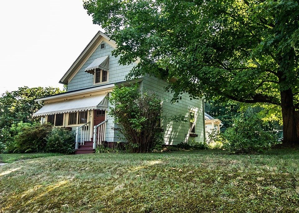 Watch the narrated video tour! The charming antique has nice backyard and a shady side yard in the center of Florence, on a street tied to the village's silk-producing past near the Mill River. Steps lead from the sidewalk to the front door, where you'll enter the enclosed screen-in porch dressed with an awning and hinged windows. There are french doors from the first-floor hallway to the living room and dining room. There is also a den and full bath between the living and dining room. The kitchen is at the rear of the house, which has a painted wood floor in a checkered pattern. The kitchen also has egress to the side yard and a pantry/work space off the back. There are three bedrooms on the second floor. The main bedroom is complemented by two arched windows. There are wood floors throughout this home.