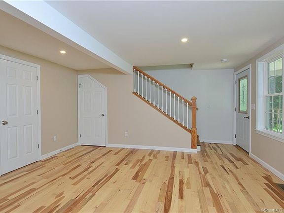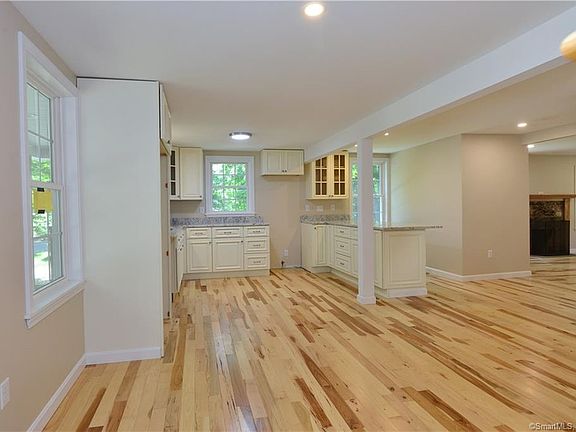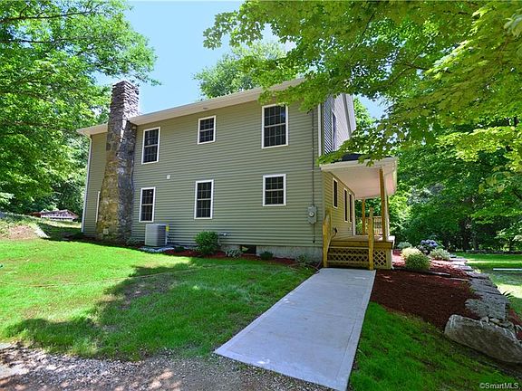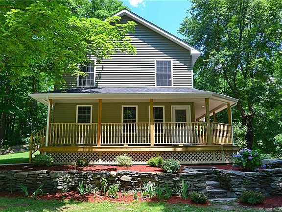 Picturesque Country setting abutting acres of protected land. Completely re-imagined Quality construction. Beautiful Hickory Hardwood floors throughout. Gorgeous New Open Kitchen with plenty of granitic counter space & a breakfast bar. Seller to add Stainless Steel refrigerator, oven/range, & dishwasher. Large Open Dining Area Keeps with the modern flow. Living Room with original fireplace (new damper & flue has modern recessed LED lighting. Half bath for guests. First Floor Master Bed with ceiling fan has private Bath with shower, ceramic tile & quartz counter. Master has its own walk out to enlarged deck to enjoy the tranquil beauty of nature. New second floor has 3 large bedrooms. Modern full bath with tub/shower. Landing area for study. Laundry area to keep everything tidy. All new plumbing, 200 amp electrical, insulation, walls, ceilings, Thermopane Harvey windows, vinyl siding roof. New top energy saving Propane Heating & AC system Hot water on demand. Cement floor in 1/2 basement. Basement not finished. Town records have not be updated. Brand New Septic System installed. .(If buyer wants 2 car garage the price will be $375,000. Wrap around porch is a lovely place to sit and relax. House sits on the corner of River Road & Cotton Road which begins a dirt road. Minutes to highway 395, shopping & restaurants. Move in ready in this lovely Pomfret Home